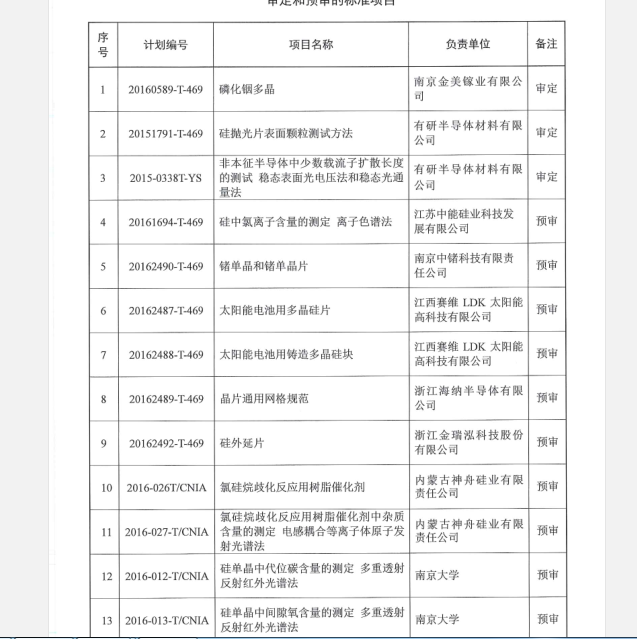 12月7日,有研半導(dǎo)體材料有限公司,南京中鍺科技有限責(zé)任公司,云南臨滄鑫圓鍺業(yè)股份有限公司,北京合能陽光新能源技術(shù)有限公司等四十多家標(biāo)委會成員單位及近百名專家參與并完成了磷化銦多晶》等13項半導(dǎo)體材料國家和行業(yè)標(biāo)準(zhǔn)的審定、預(yù)審和討論。會議在12月7日下午5點(diǎn)取得圓滿成功。