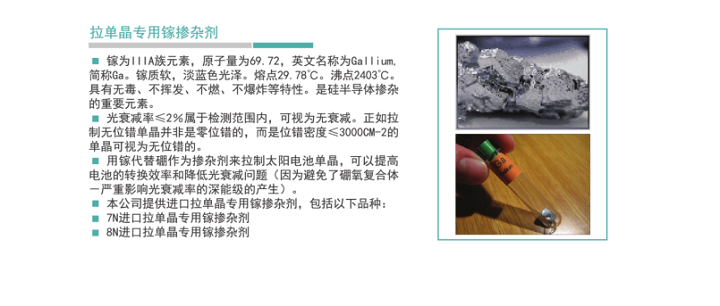 ■ 7N進(jìn)口拉單晶專用鎵摻雜劑